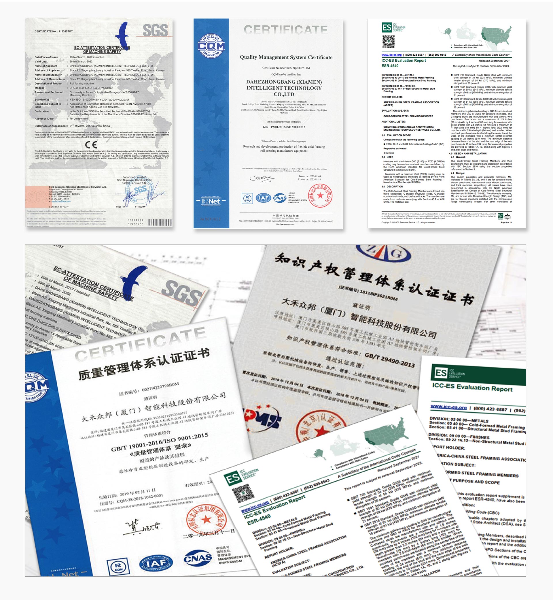 建筑在不同區(qū)域有不同的要求,符合國(guó)家要求的產(chǎn)品需要提從相應(yīng)的認(rèn)證,大禾速建深知這一點(diǎn),多年來不段的完善產(chǎn)品的認(rèn)證系統(tǒng),如:美國(guó)的ICC認(rèn)證,就是美國(guó)房屋驗(yàn)收的必需認(rèn)證,生產(chǎn)工廠需要在產(chǎn)品上標(biāo)出認(rèn)證編號(hào)才能通過當(dāng)?shù)氐尿?yàn)收。