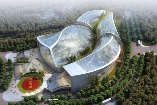 2014年青島世界園藝博覽會(huì)場區(qū)位于青島市北部百果山森林公園,由植物館、主題館、夢幻科技館等10余個(gè)場館組成。地下1層為鋼筋混凝土框架剪力墻結(jié)構(gòu),地上1層為鋼結(jié)構(gòu),整體呈樹葉形,總建筑面積達(dá)2.3萬平方米,是亞洲最大的鋼結(jié)構(gòu)植物園。