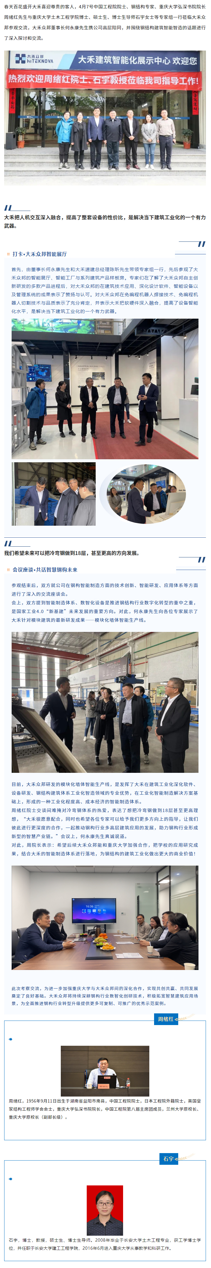 向高向新 共商未來|重慶大學(xué)專家蒞臨大禾眾邦,就鋼構(gòu)智能制造體系進行交流指導(dǎo)
