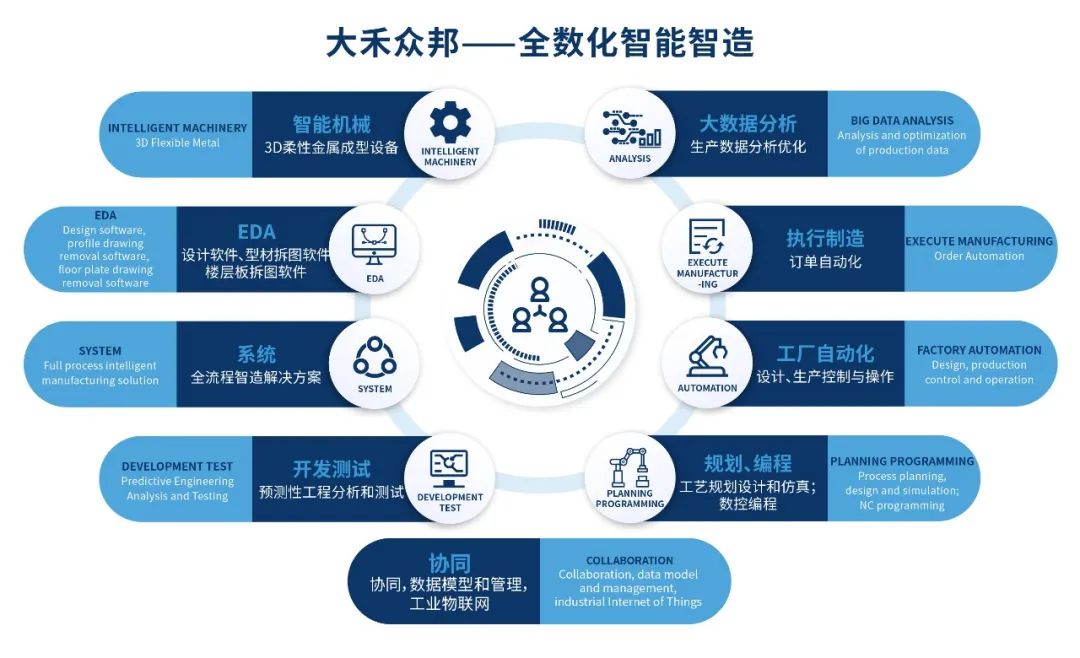 大禾眾邦成立于2009年3月,是以鋼結構全數(shù)字化智能制造解決方案為主體的高新技術企業(yè)。歷經(jīng)十余年發(fā)展與布局,已為國內(nèi)3000多家工廠 、全球超過72個國家和地區(qū)的鋼結構相關企業(yè),提供智能裝備、建筑技術、設計軟件以及管理系統(tǒng)的整體解決方案,目前已服務裝配式輕鋼房屋工廠、圍護材料加工廠、光伏支架工廠、模塊化建筑工廠、機器人產(chǎn)線鋼構件工廠、汽車行業(yè)等多個領域。